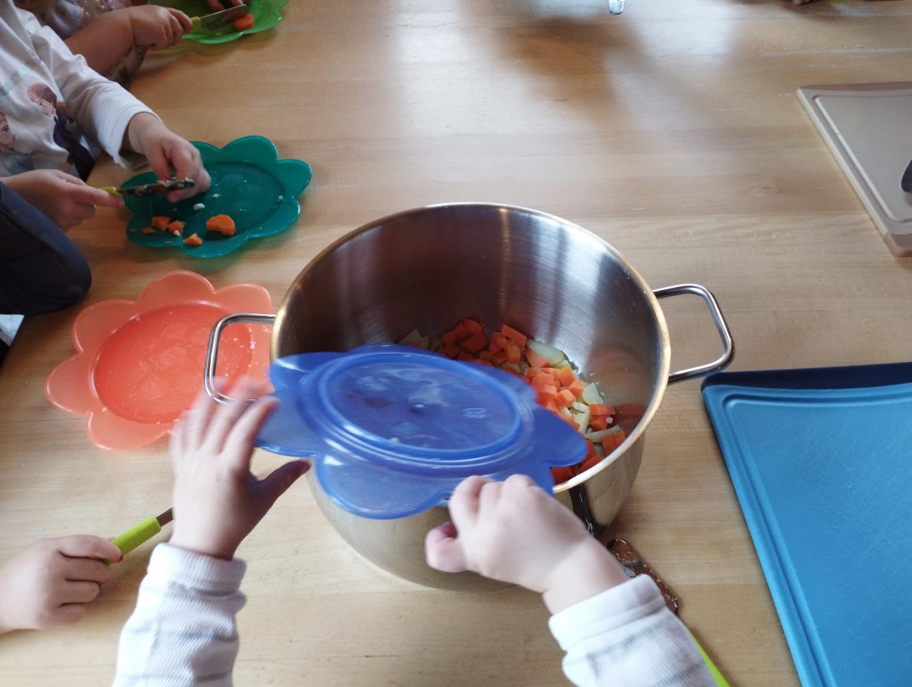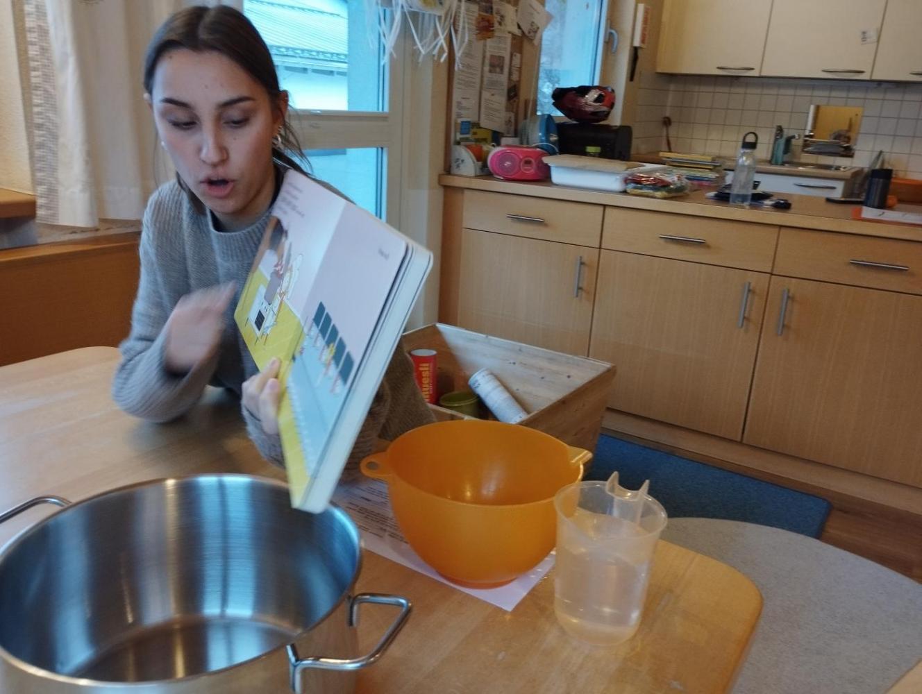 Die nächsten zwei Tage ging es dann ans Kochen. Sie hat anhand eines Bilderbuches über das Suppe kochen den Kinder erklärt, wie sie das jetzt machen. Dann hat sie gemeinsam mit den Kindern eine leckere Suppe gekocht.