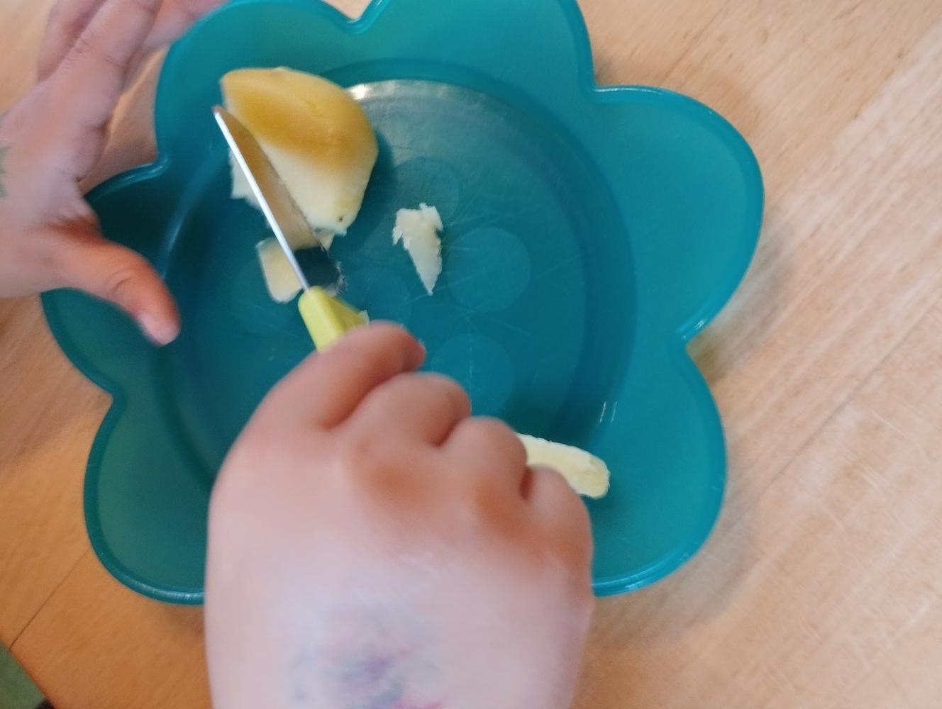 Anschließend hat sie in der Puppenküche einen Impuls gesetzt, wo sie einige besondere mitgebrachte Küchenutensilien angeboten hat. Diese haben die Kinder mit Freude angenommen und damit "Suppe kochen" gespielt.