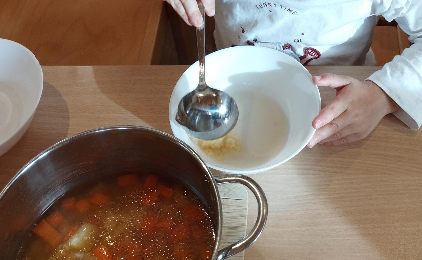 Zur Jause konnten alle Kinder die selbst gemachte Sternen-Gemüsesuppe essen.