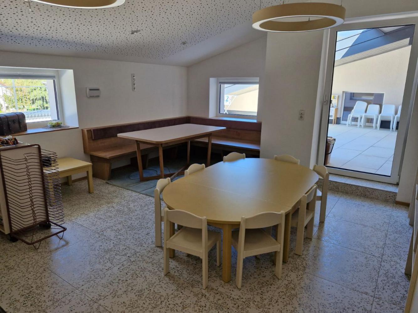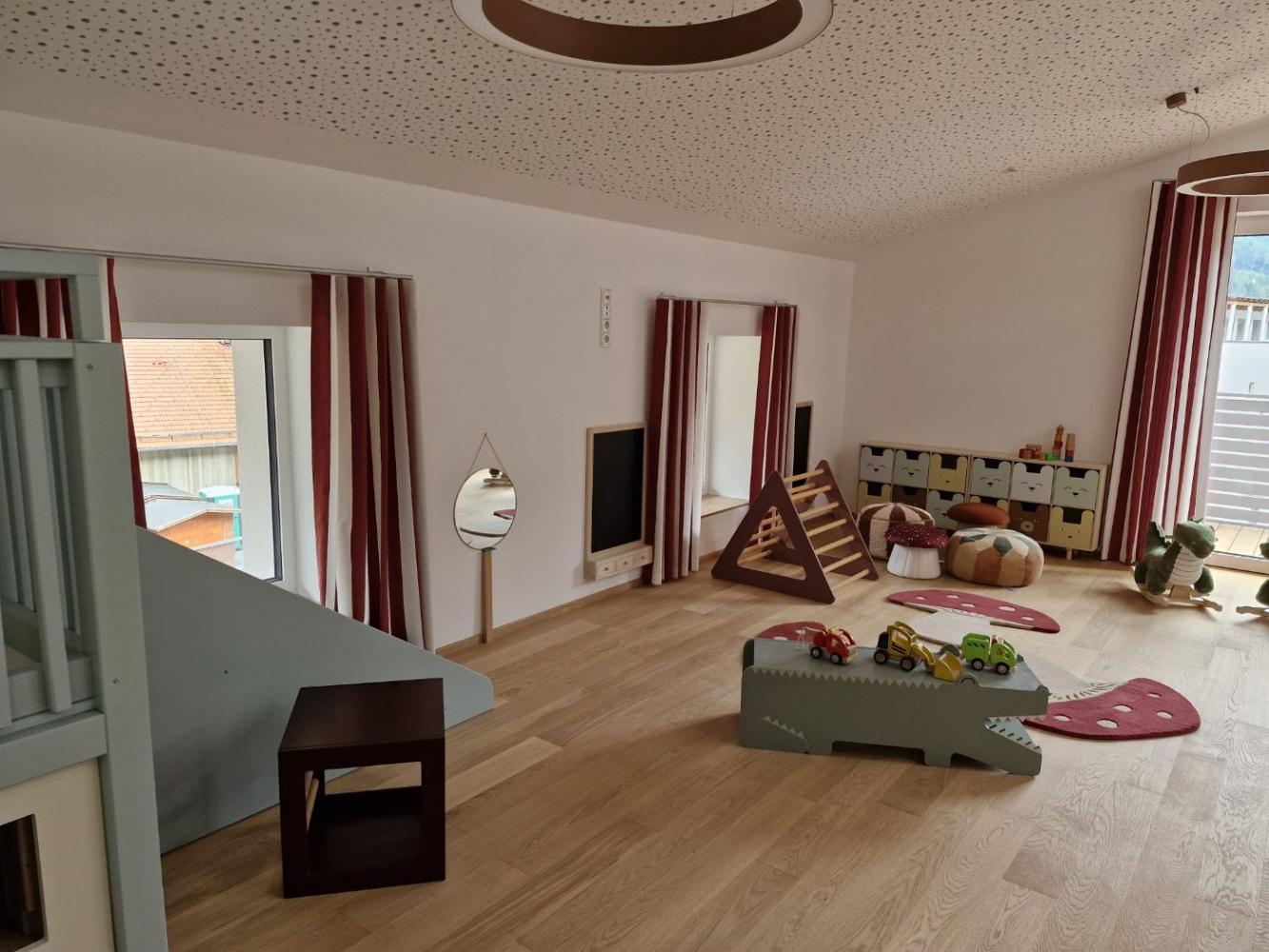 Unsere Einrichtung befindet sich seit September 2025 im Dachgeschoß des Kindergartens.