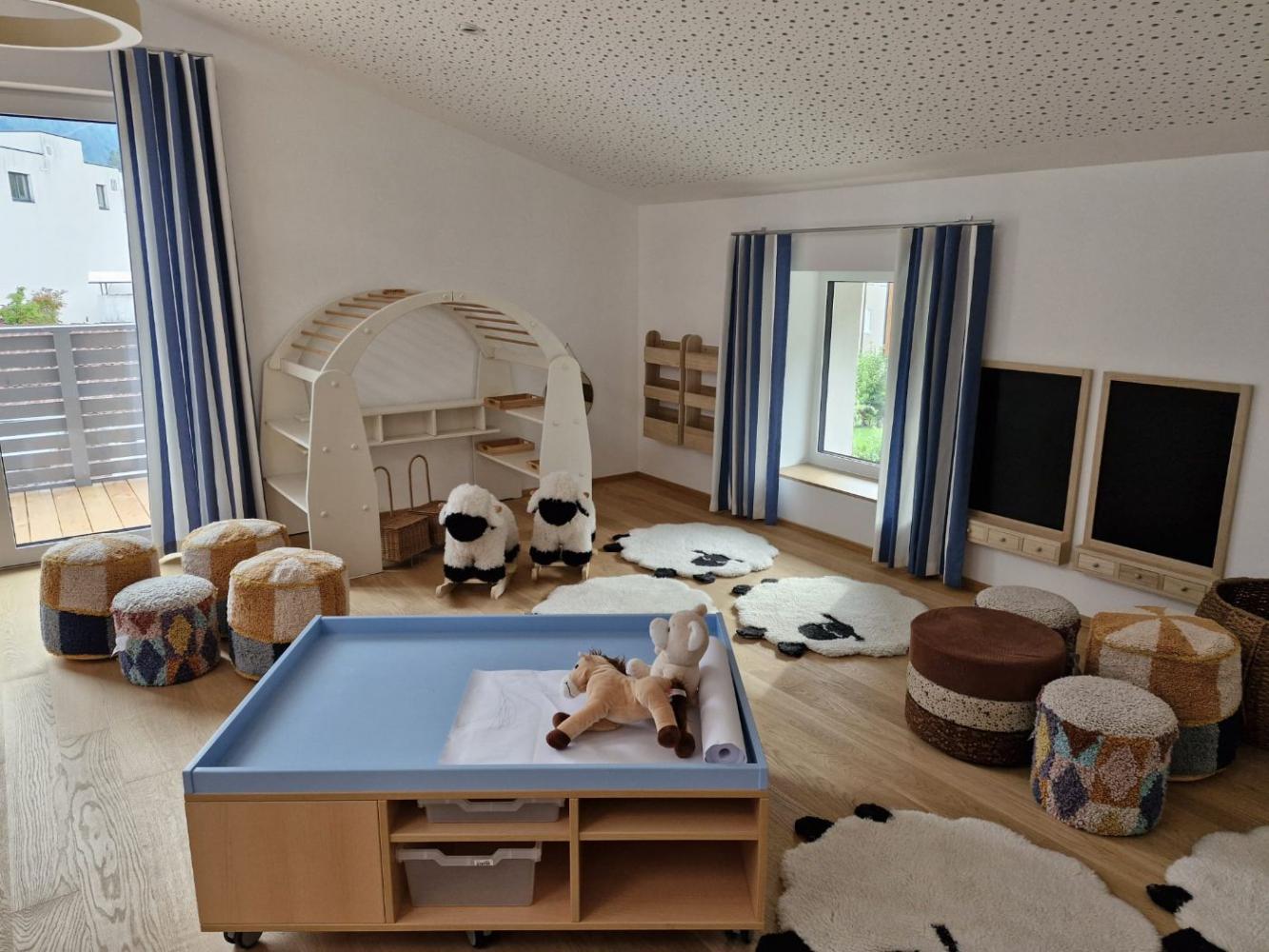 Wir sind in der glücklichen Lage, mit großzügigen Räumlichkeiten ausgestattet zu sein, was uns ermöglicht, ein differenziertes und vielfältiges Angebot zu schaffen, in dem Rückzug aber auch Raum für Spiel, Kommunikation und Bewegung gewährleistet sind.